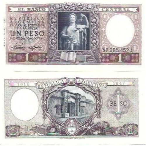 - Modelo: Argentina 1 Peso 1952/55 P-260b Fe Comemorativa