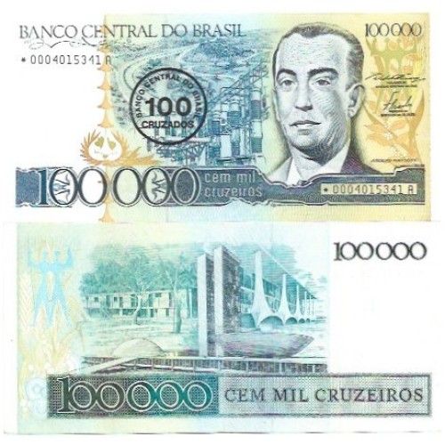 • Brasil C-179a 100 Cruzados Carimbo 1986 FE *Asterisco - S 0004
