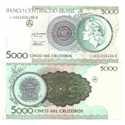 • Brasil C-222a 5.000 Cruzeiros 1990 FE Asterisco