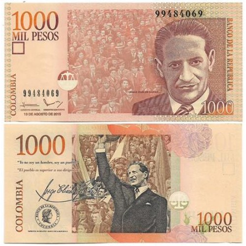 Colômbia 1.000 Pesos 2015 Fe P-456t