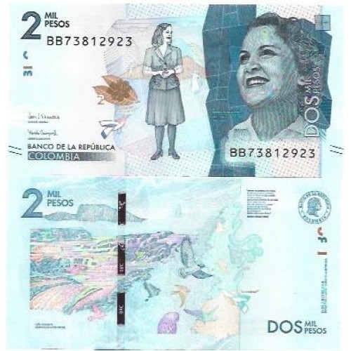 Colômbia 2.000 (2 Mil) Pesos 2018 Fe P-458d