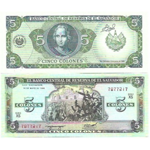 El Salvador 5 Colones 1990 FE P-138a