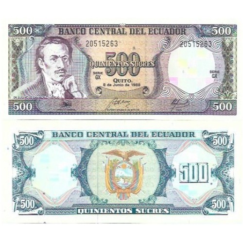 - Modelo: Equador Ecuador 500 Sucres 1988 FE P-124Aa1 (GX)