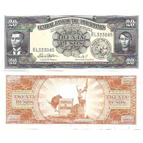 - Modelo: Filipinas 20 Pesos 1949/69 FE P-137e