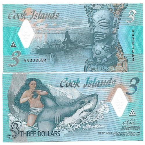 Etiquetas: cedulas, notas, numismatica, notafilia, oceania, ilhas, cook, islands, dollars, dolars, tubarao, mulher, banhista, escultura
