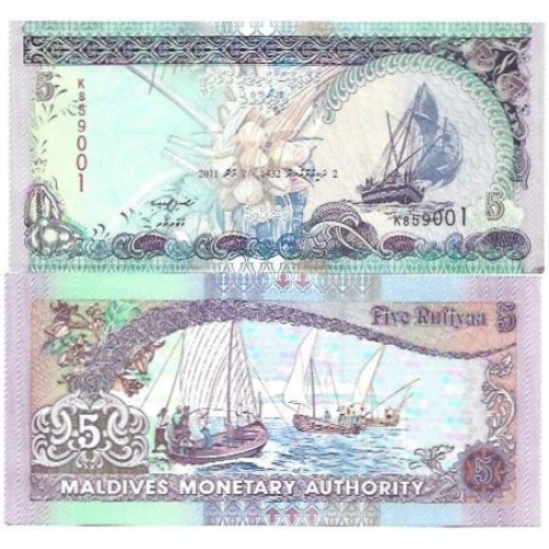 - Modelo: Ilhas Maldivas 5 Rufiyaa 2011 FE P-18d