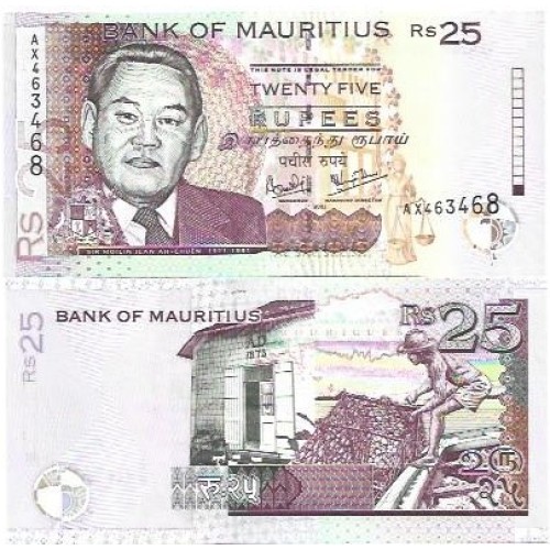 - Modelo: Ilhas Maurício Mauritius 25 Rupees 2003 P-49b FE