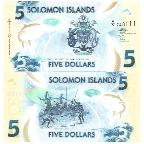 - Modelo: Ilhas Salomão Solomon 5 Dollars 2019 P-38a Polím