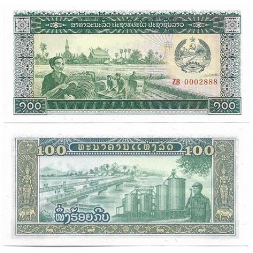 Lao Laos 100 Kip 1988 Fe P-30r Série ZB, Reposição