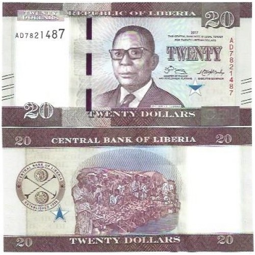 • Modelo: Libéria 20 Dollars 2017 P-33b Fe