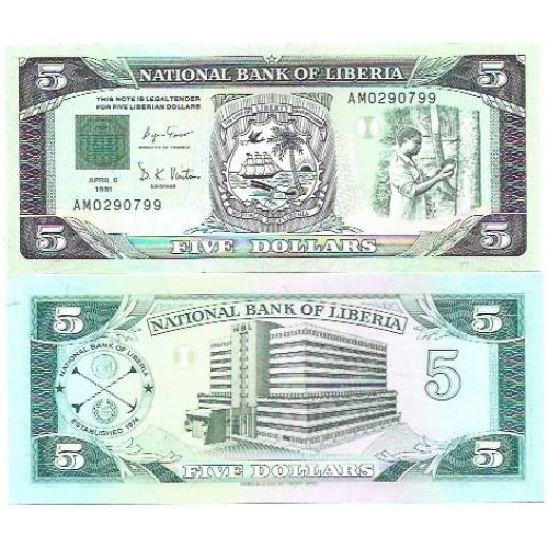 • Libéria 5 Dollars 1991 FE P-20