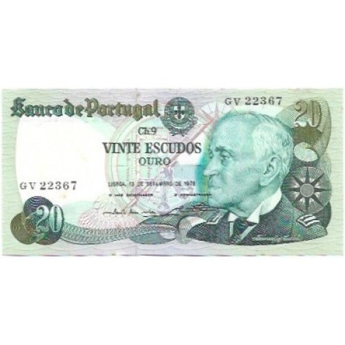 Portugal 20 Escudos 1978 FE P-176a4.2 - mancha leve