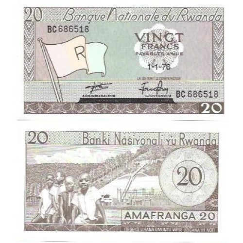 • Ruanda Rwanda 20 Francs 1976 FE P-6e