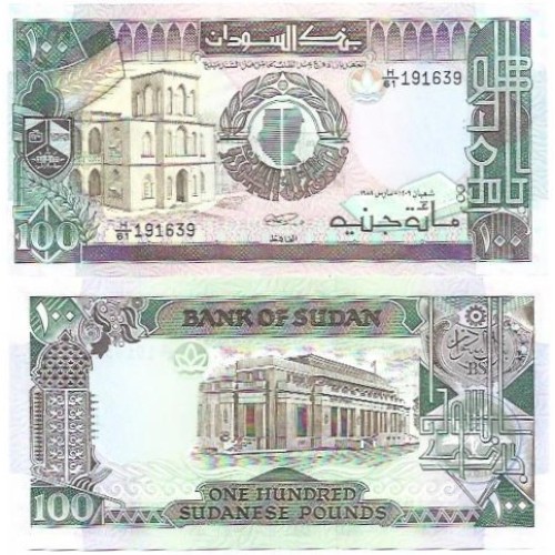 • Sudão Sudan 100 Pounds 1988/90 FE P-44b