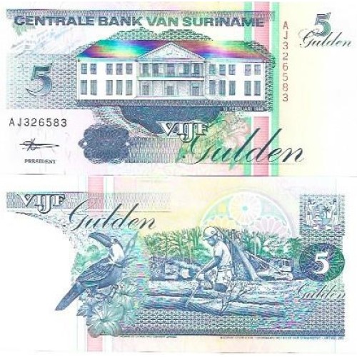 • Suriname 5 Gulden 1998 P-136b3 FE