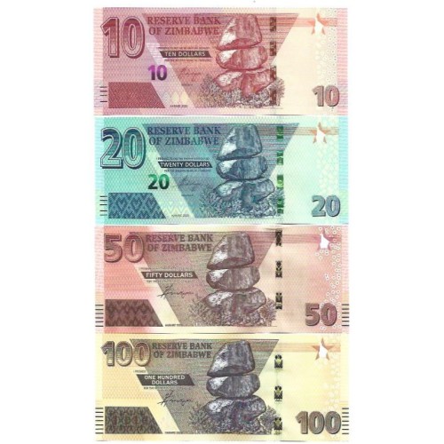 Zimbabue 10/20/50/100 Dollars 2020 FE (P-103a/P104a/P-105a/P-106a)